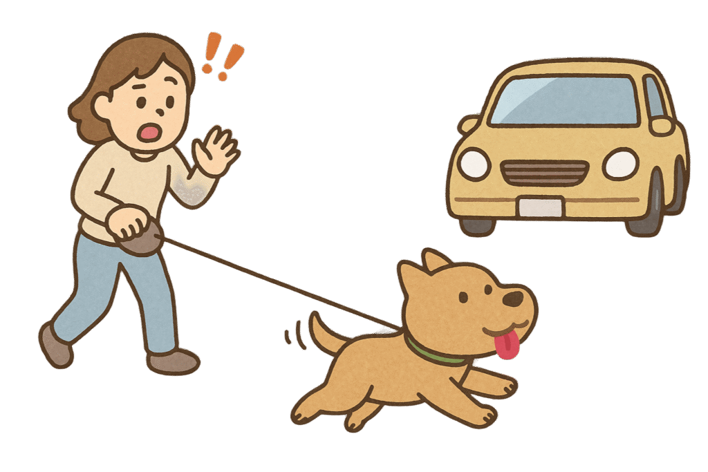 伸縮リードは「散歩中の犬に自由を与えられる」と考えて使う飼い主が多いのですが、路上での使用はとても危険です。実際、交通事故や通行人との接触など、多くのトラブルが報告されています。ここでは、路上で起こりやすい危険性を詳しく見ていきましょう。