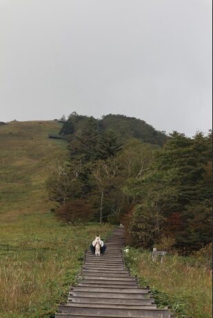 ⛰️空へ続く階段とコーギー